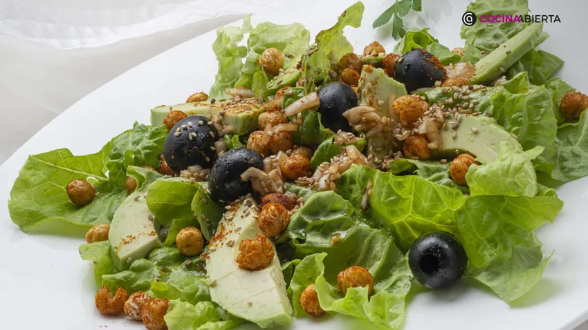 Ensalada templada de garbanzos fritos, aguacate y aceitunas ¡una receta elaborada por Karlos Arguiñano!