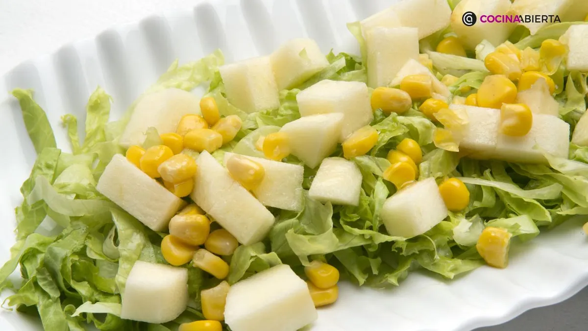 Karlos Arguiñano presenta una sencilla ensalada de lechuga, maíz y manzana con aliño de miel.