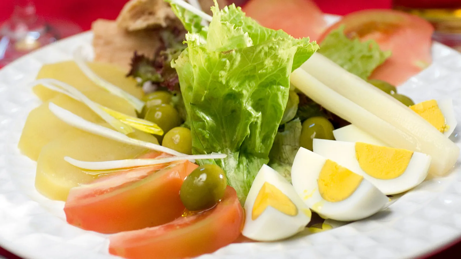 Receta de Karlos Arguiñano de ensalada mixta, una de las ensaladas más populares elaborada con lechuga, tomate, aceitunas, atún, espárragos, patatas y huevo cocido.