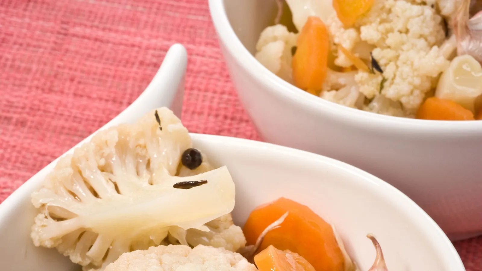 Receta de escabeche de coliflor, un primer plato preparado por Bruno Oteiza con una salsa hecha con vino y vinagre.