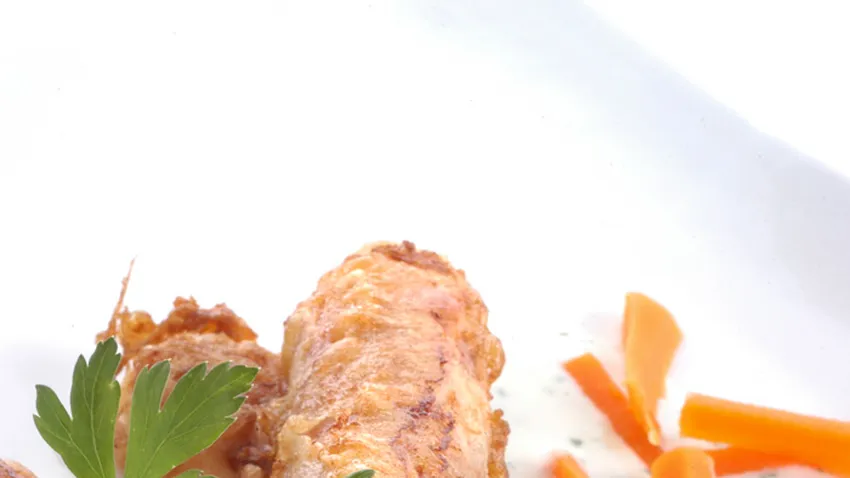 Karlos Arguiñano prepara una receta de espárragos enrollados en jamón cocido rebozados y acompañados de una suave salsa bechamel.