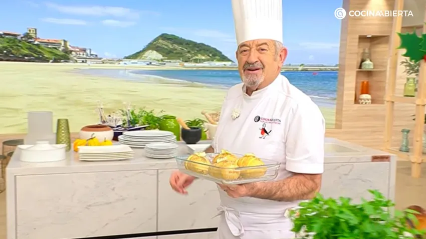 Aprende a preparar patatas Hasselback con la receta y el truco de Karlos Arguiñano. Esta guarnición, sencilla y vistosa, consiste en asar las patatas al horno cortadas en forma de acordeón, presentándolas enteras como un acompañamiento perfecto.