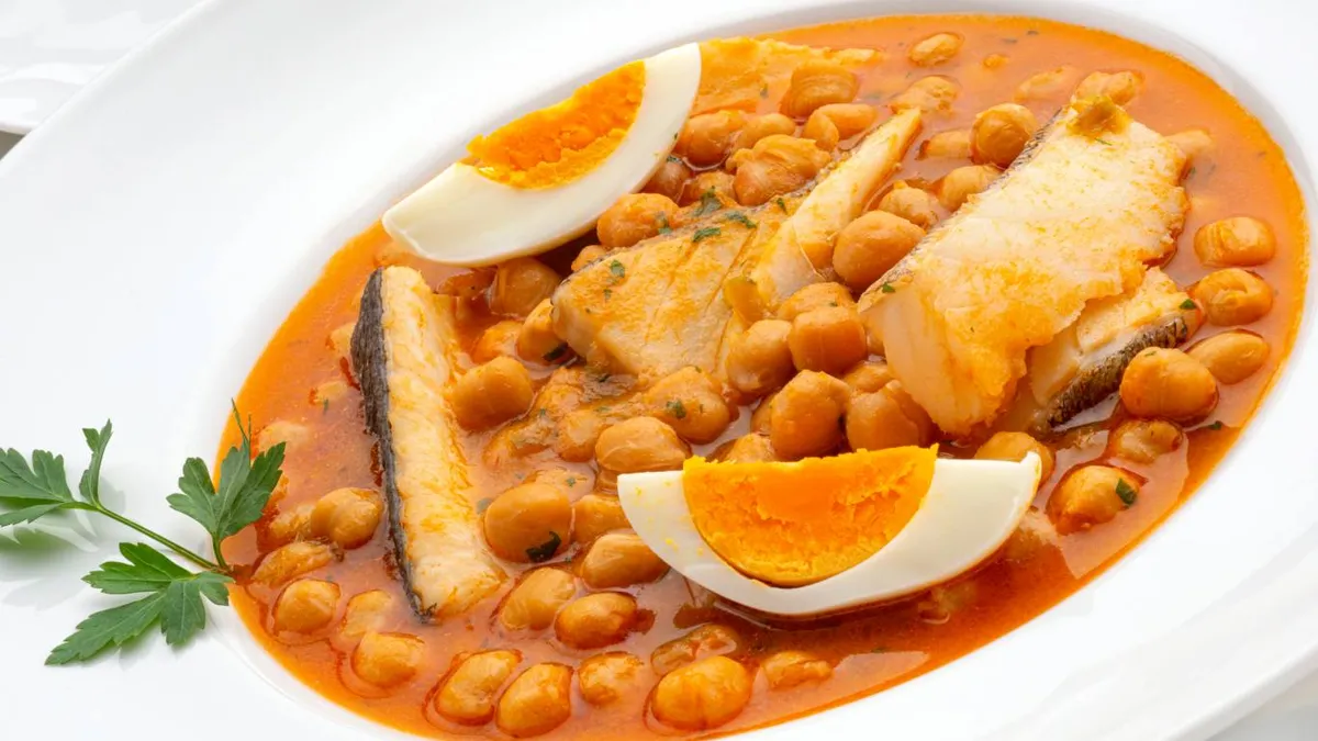 Un plato que combina ingredientes del mar con la suavidad del garbanzo, logrando un guiso lleno de sabor
