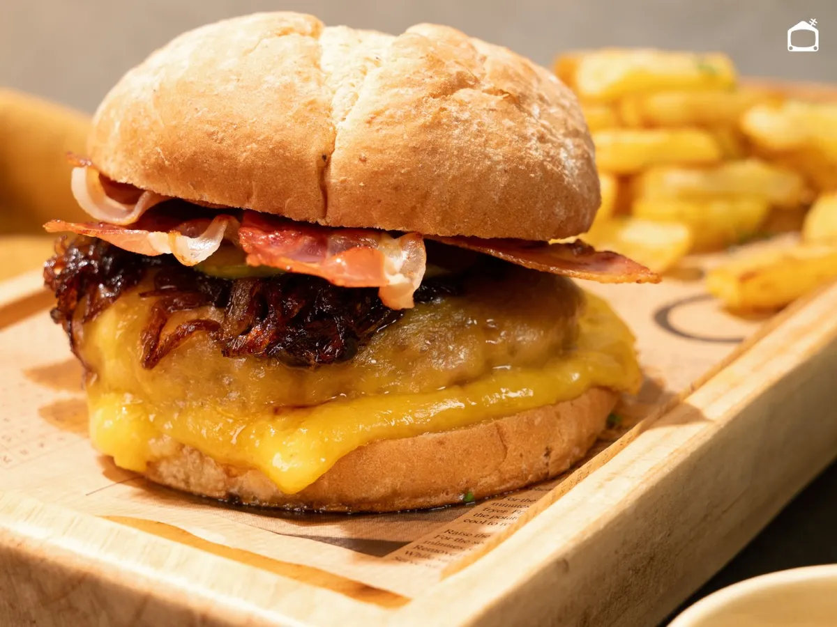 Con beicon crujiente, doble queso y un toque dulce tostado en la manzana