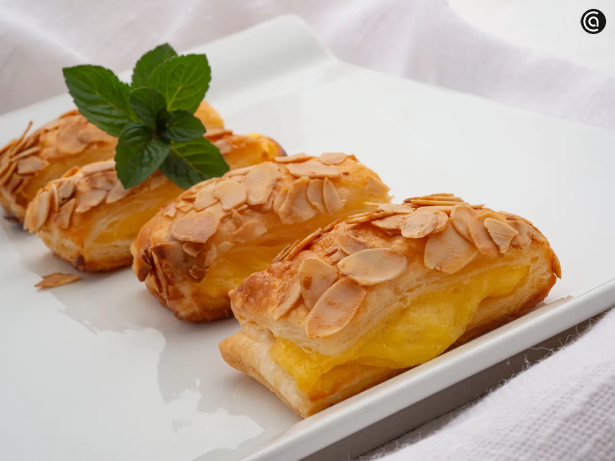 Unos pastelitos de hojaldre con crema y almendra laminada, rápidos, aromáticos y perfectos para cualquier ocasión