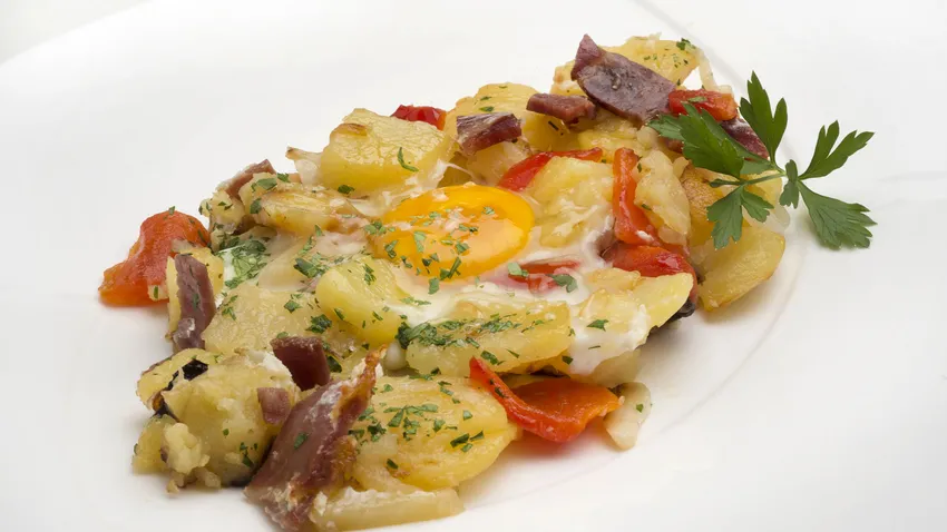 Patatas, pimientos y huevos