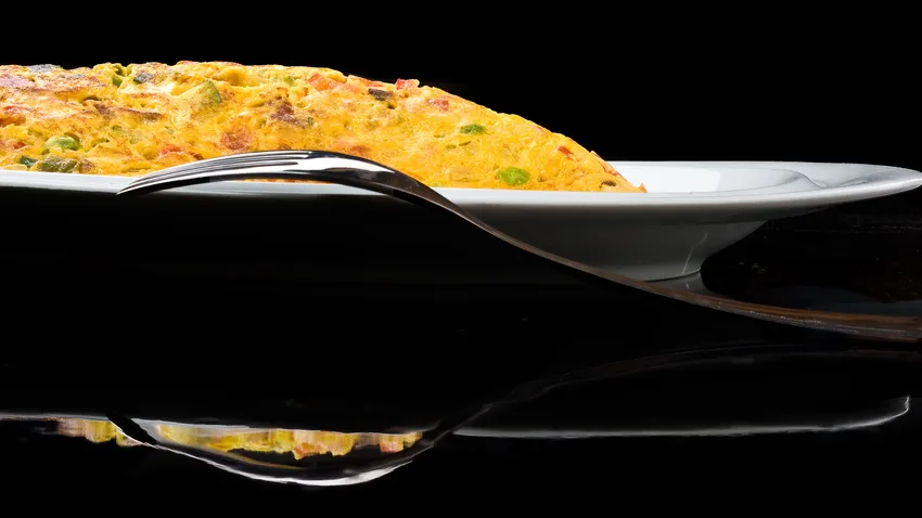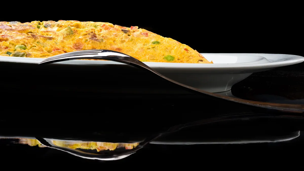 Una receta de tortilla con chorizo, guisantes frescos, pimiento y cebolla, del cocinero Bruno Oteiza.