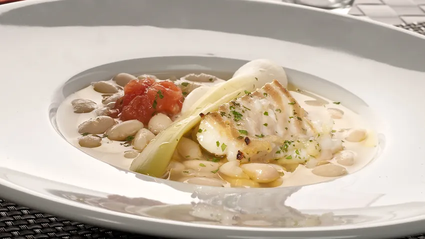 Bruno Oteiza elabora una receta de alubias blancas en la cazuela acompañadas de bacalao macerado en aceite, guindilla y ajo.