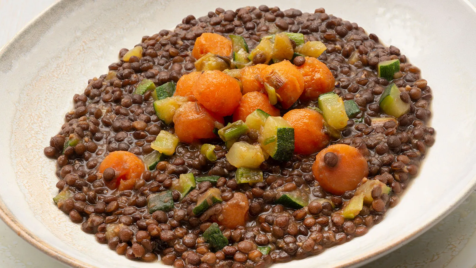 Lentejas con calabacín y bolitas de boniato