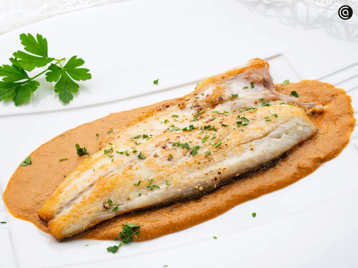 Un plato de pescado con salsa cremosa y sabor intenso a marisco