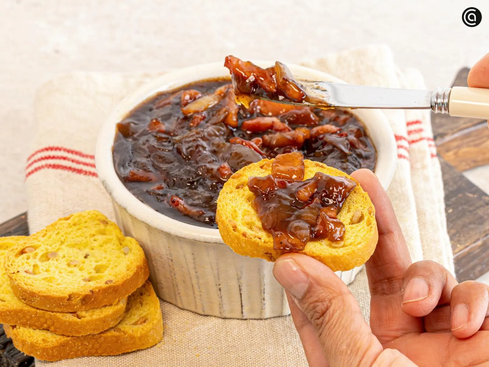 Una mezcla intensa de bacon y cebolla caramelizada, perfecta como aperitivo