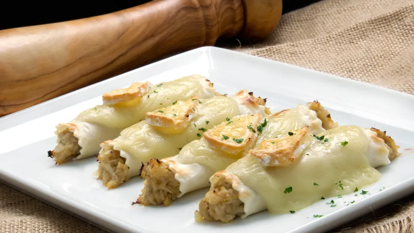 Karlos Arguiñano prepara canelones rellenos de pollo y acompañados de salsa velouté y queso gratinado, una receta tradicional de la cocina italiana.