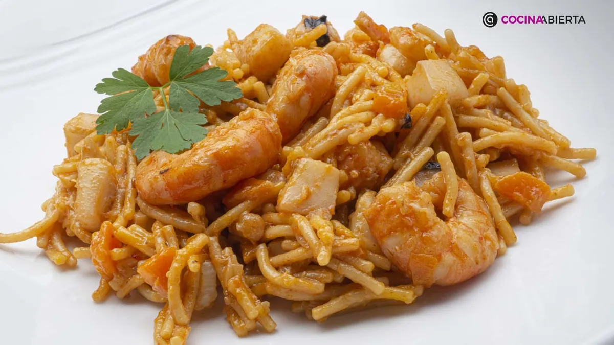 En Cocina Abierta presentamos una receta de fideos sencilla y riquísima: Fideos con sepia y langostinos, una propuesta marinera elaborada por Karlos Arguiñano que podemos preparar para degustar en familia ¡ideal para disfrutar de ella con el buen tiempo de primavera o verano!