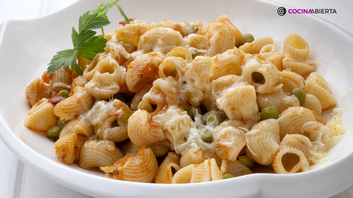 Pasta con guisantes gratinados por Karlos Arguiñano