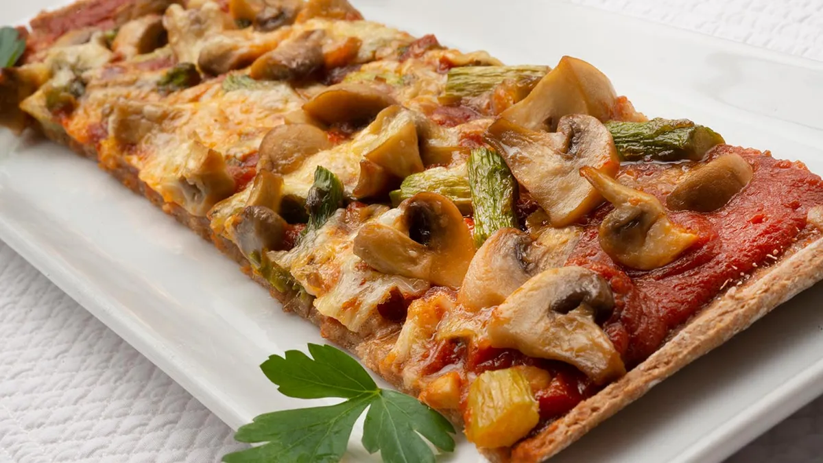 Si estas buscando una pizza vegetariana no dejes escapar esta receta de pizza casera de verduras de Karlos Arguiñano. Sus ingredientes principales son cebolleta, espárragos verdes, champiñones y queso.