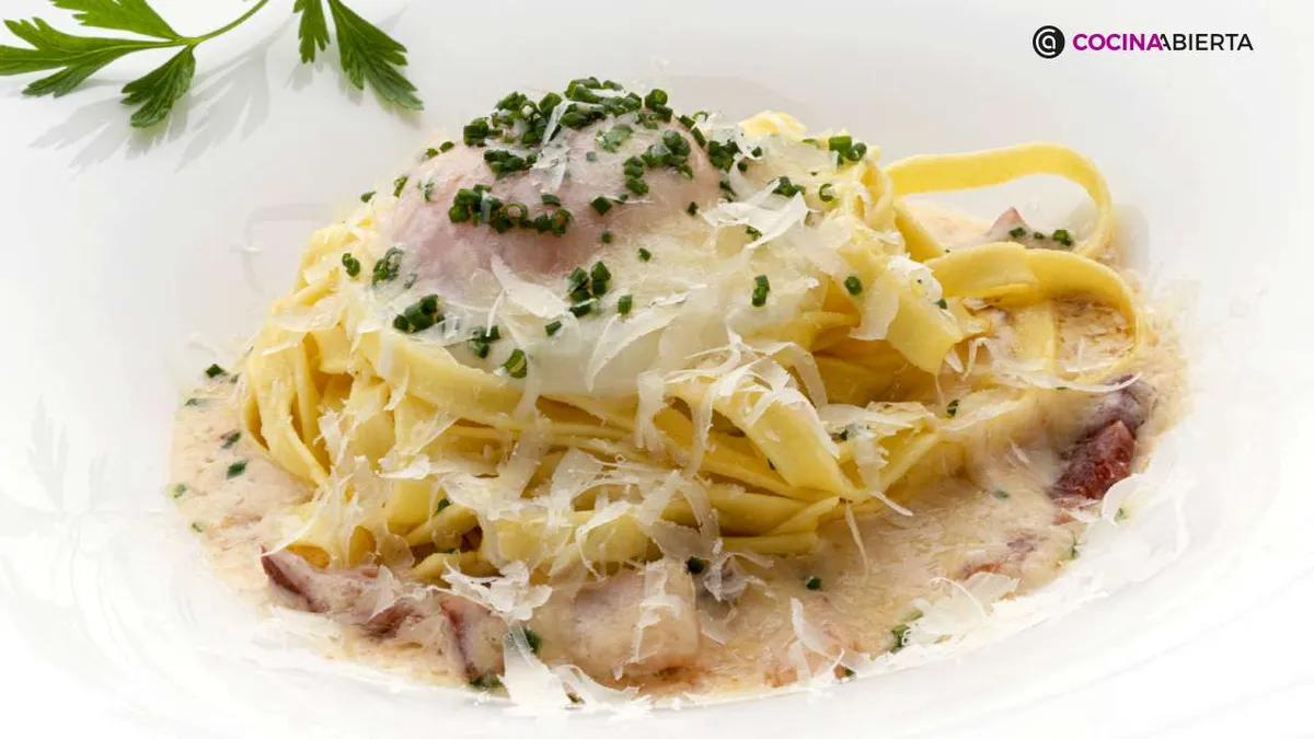 Tallarines a la carbonara con huevo poché, la propuesta de Joseba Arguiñano que a todos gusta