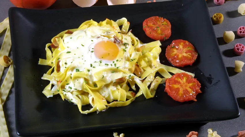 Una receta sencilla apta para cualquiera que quiera aprender a cocinar. Se trata de una receta de tallarines o pasta fresca con huevo y queso.