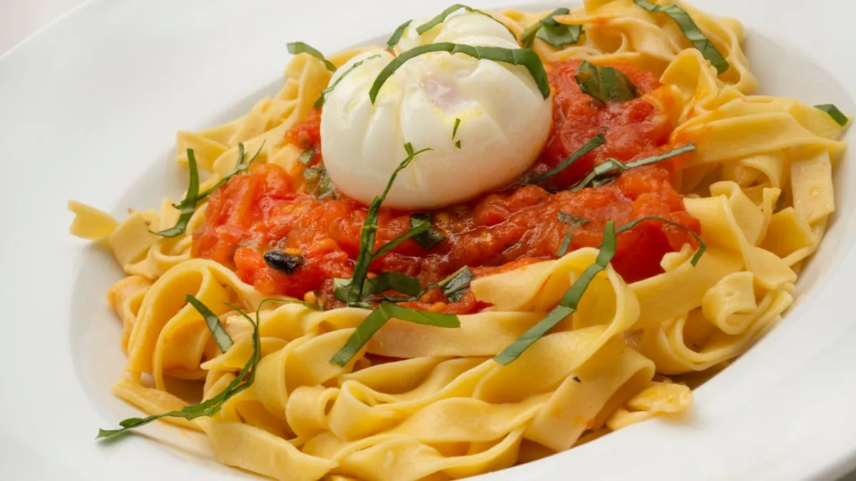 Tallarines picantes con huevo flor