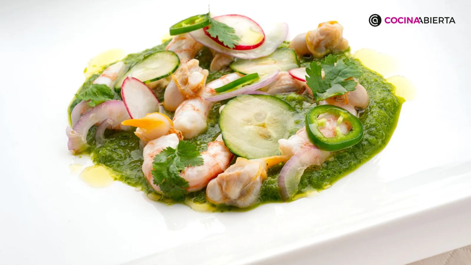 Tradicionalmente, se hace con camarones, chiles, limón (lima en España), cebolla morada y pepino, pero en esta versión, Joseba lo adapta con gambas y berberechos, haciéndolo más fácil de preparar en casa sin perder ese sabor vibrante de la cocina mexicana.