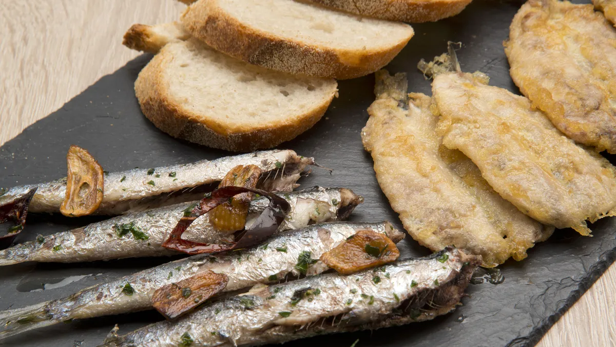 Karlos Arguiñano presenta un plato de anchoas cocinadas de dos maneras, al ajillo y rebozadas, acompañadas de pan.