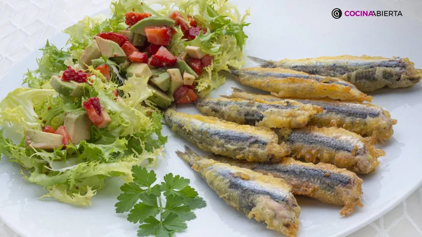 Presentamos una sabrosa y sencilla receta de pescado azul: Anchoas con gabardina y ensalada, un nutritivo plato en el que elaboraremos una crujiente pasta orly para rebozar y lo acompañaremos de una refrescante ensalada de aguacate y fresas, con el paso a paso de Karlos Arguiñano.