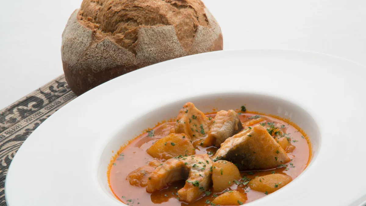 Receta de Karlos Arguiñano de anguila con patatas cocidas y pan tostado untado con ajo. Este plato tiene su origen en las orillas del lago de la Albufera (Valencia) y se conoce como all i pebre de anguilas, pescado abundante en la zona.