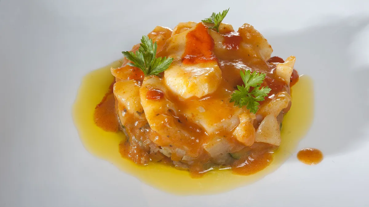 Bruno Oteiza prepara un plato de bacalao al pil pil con pimientos del piquillo, fritada y verduras salteadas.