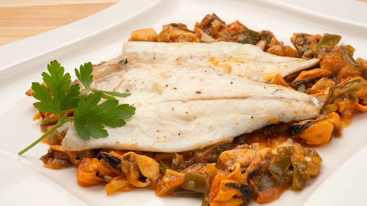 Los alimentos de origen animal, dorada y mejillones están en la cantidad adecuada (200 g por comensal). Sin embargo el porcentaje se excede del 25% recomendado (35,7%) por la escasa cantidad de verdura.