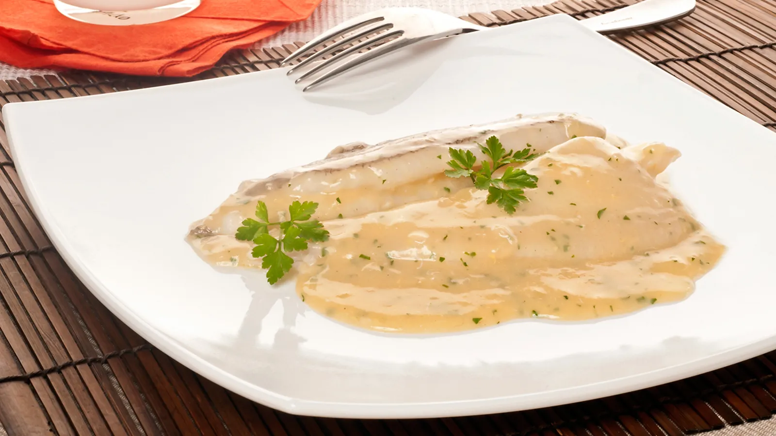 Receta de gallo al horno con velouté de Bruno Oteiza. La velouté es una salsa tradicional de la cocina francesa de aspecto cremoso. Se elabora con un caldo ligado con harina y mantequilla.