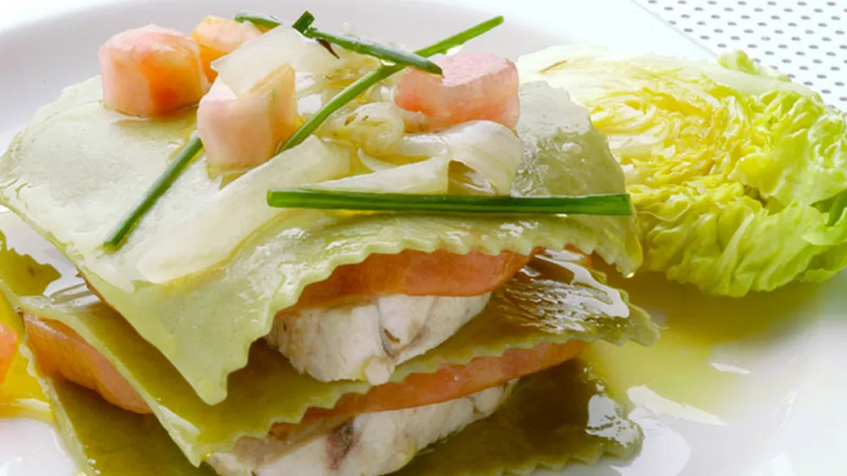 Receta de lasaña fría de bonito en escabeche, Karlos Arguiñano crea una lasaña muy fresca para el verano alternando pasta, bonito escabechado y tomates.