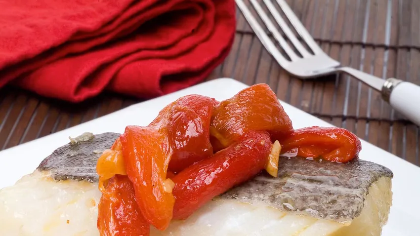 Receta de Lomo de bacalao con repollo. Plato de pescado a base de lomos de bacalao desalado con salsa de vino blanco y repollo cocido. Una receta de pescado del cocinero Ramón Roteta del programa Cocina para dos.