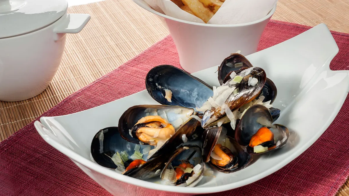 Receta de Bruno Oteiza de mejillones y patatas fritas, moules et frites, un plato típico de la cocina belga, especialmente de Bruselas y la costa de Bélgica.