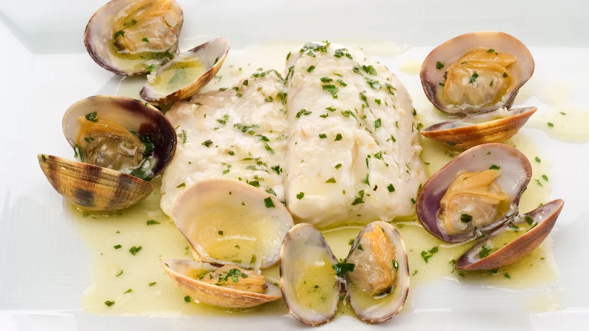Receta de merluza en salsa verde con almejas. Bruno Oteiza prepara la tradicional merluza en salsa verde con almejas, vino blanco y perejil.