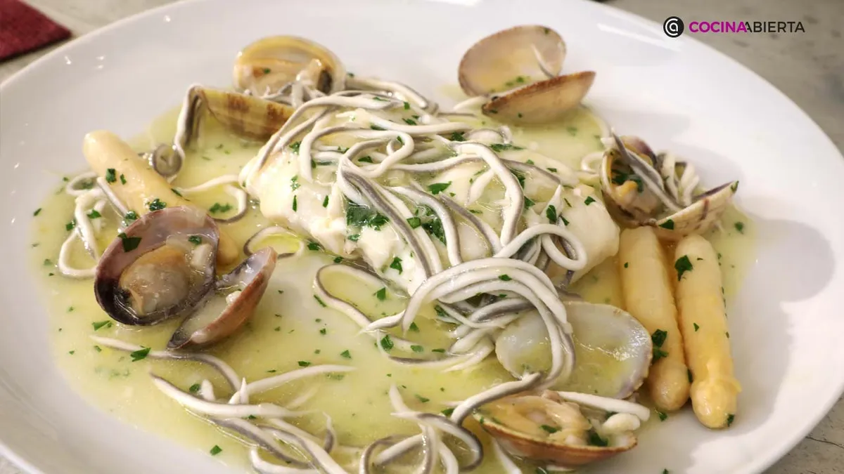 Merluza en salsa verde con gulas, una receta tradicional de la cocina vasca