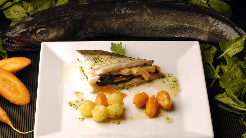 Disfruta de esta receta de pescadilla al horno rellena de espinacas y gambas elaborada por Karlos Arguiñano.