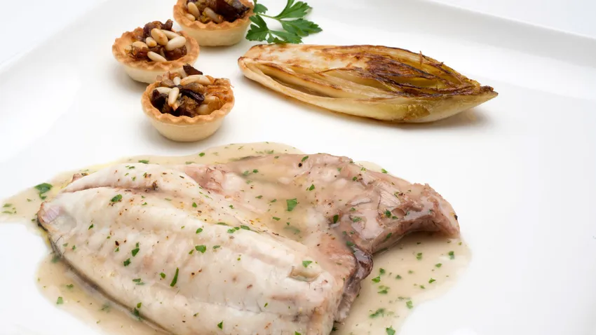 Karlos Arguiñano prepara un plato de sargo al horno en salsa acompañado de endibias a la plancha y tartaletas rellenas de chalotas, piñones y ciruelas pasas salteadas.