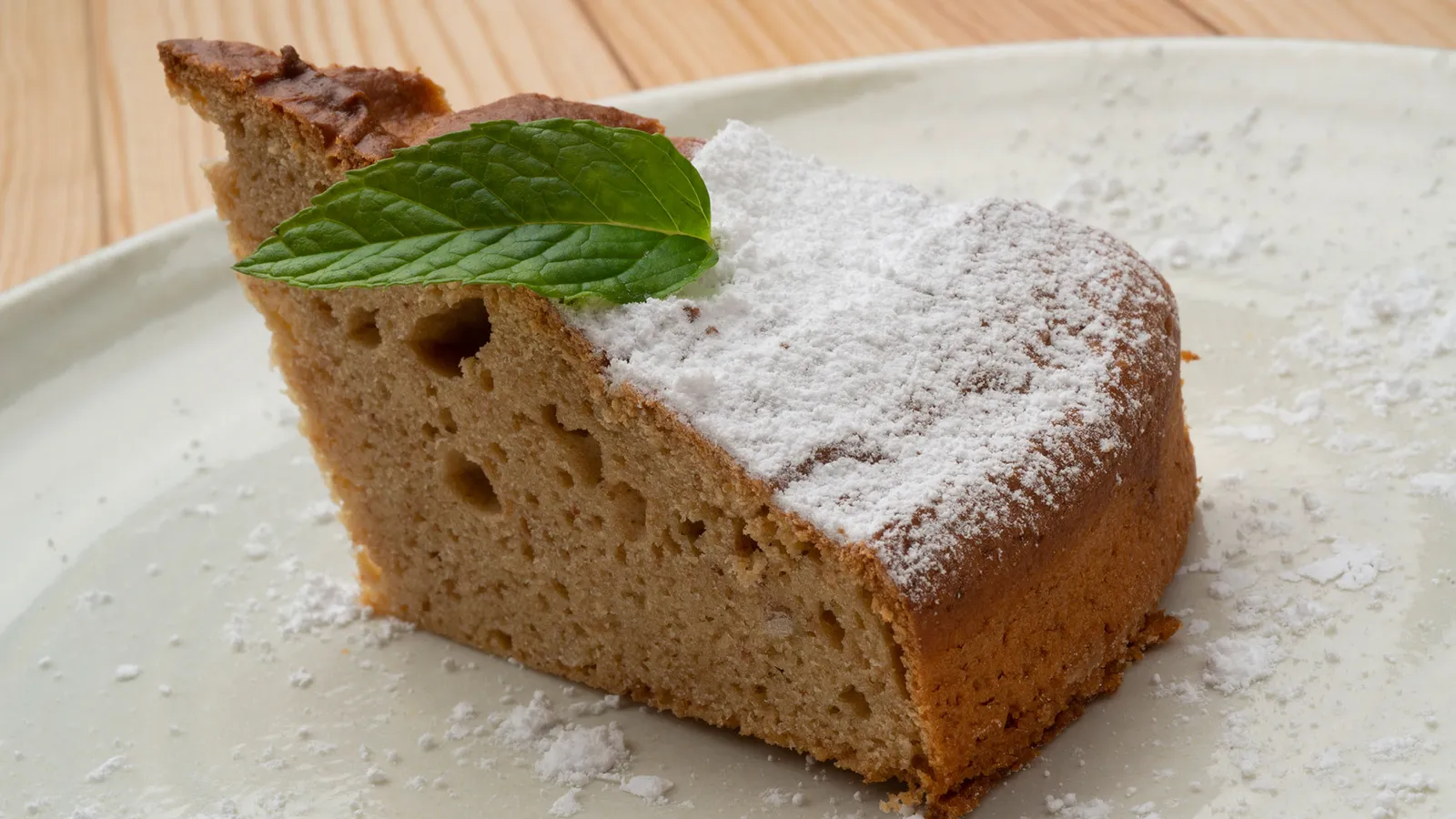 Deja que se enfríe, desmolda y espolvorea el bizcocho con un poco de azúcar glas. Adórnalo con unas hojas de menta. Sirve.