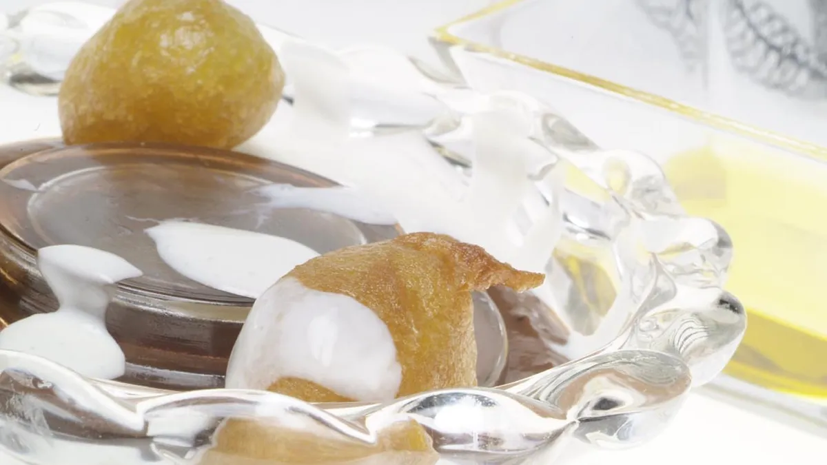 Sirve los buñuelos sobre una cama de yogur y espolvoréalos con cacao en polvo. Adorna con unas hojas de menta.