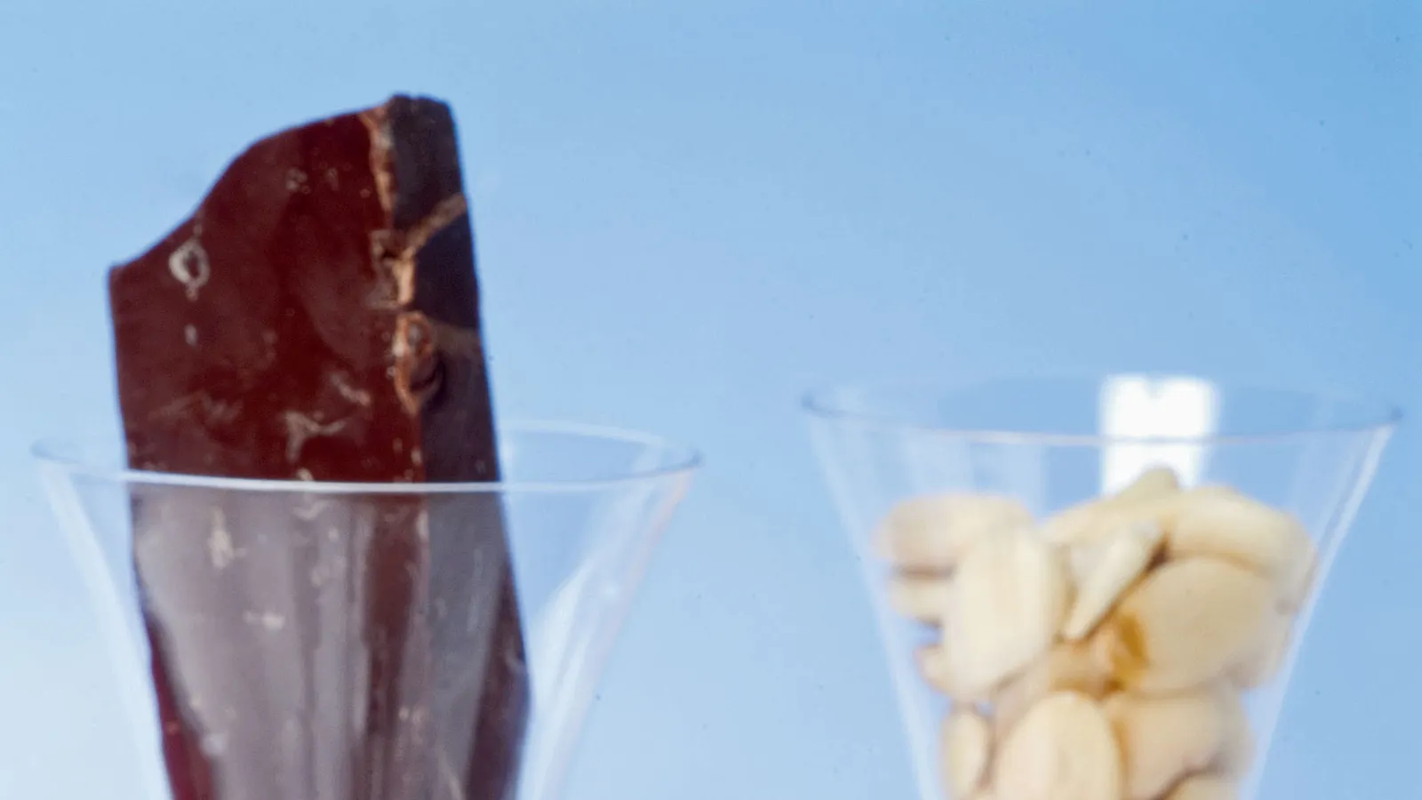 Pica las almendras y espolvorea las copas con unos trocitos.