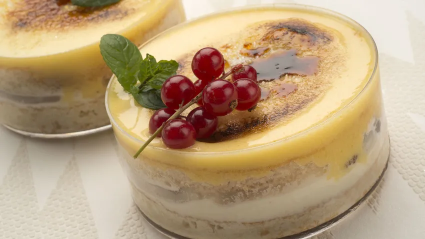 Eva Arguiñano prepara una receta de copas de bizcocho y pasas al ron con helado y crema de yema caramelizada. Este postre se sirve muy frío o congelado.
