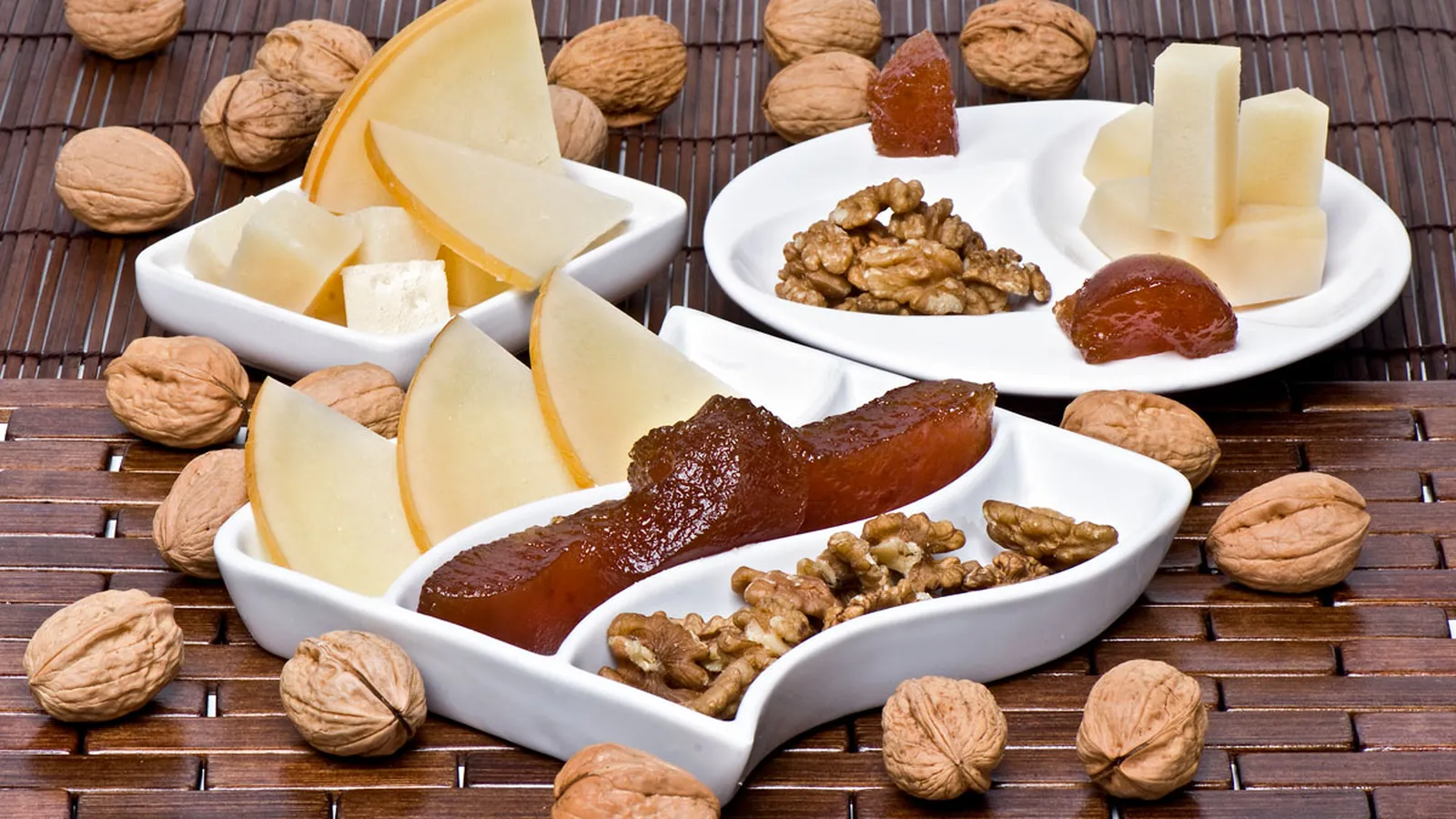 Este postre típico de sidrerías vascas se nutre de tres grandes productos: queso, elaborado con leche de oveja; nueces, recolectadas cada otoño en nuestros campos; y dulce de manzana, una forma interesante de conservar nuestra deliciosa manzana reineta. Una gran combinación en la que prima el contraste de texturas y de sabores (dulce y salado), convirtiéndolo en un delicioso manjar.