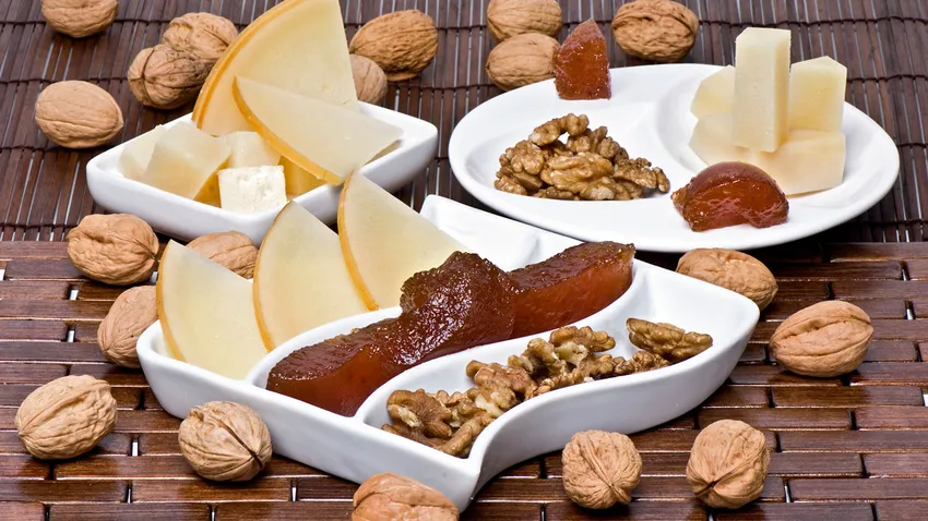 Receta de Eva Arguiñano de dulce de manzana casero acompañado de queso y nueces, un postre tradicional de la cocina vasca durante los meses de invierno.