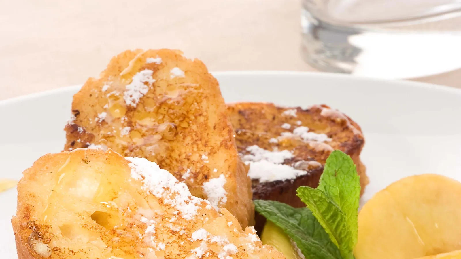 Receta de torrijas con melocotón al caramelo. Eva Arguiñano realiza en el programa Hoy cocinas tú una receta de torrijas acompañadas de melocotón con caramelo y azúcar glas.