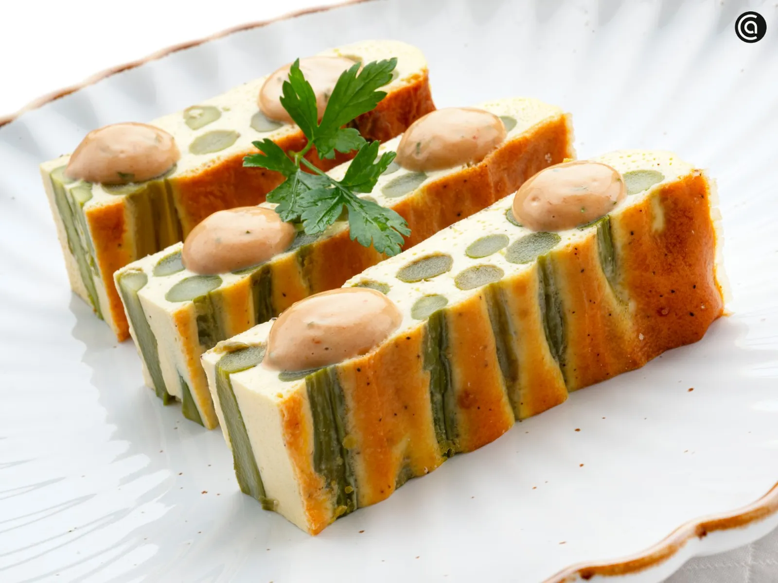 En este caso, los espárragos verdes se integran en la mezcla y, al cortarlo, el interior queda muy vistoso. Es un primer plato fácil de hacer en casa y una buena forma de preparar verduras de una manera distinta.