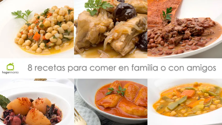 8 recetas para comer en familia o con amigos, una selección especial de platos como carne guisada, olla gitana, chipirones rellenos, pulpo, sopa de pollo o garbanzos para que podamos disfrutar con familiares y amigos en cualquier situación.