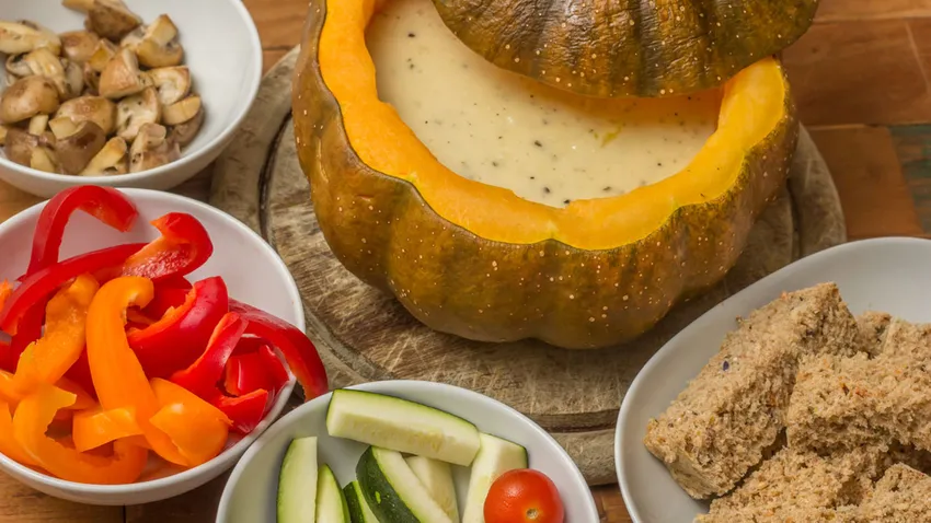 Cómo preparar una deliciosa fondúe de calabaza y queso. Perfecta para acompañar con trocitos de pan, setas, tomate, pimientos o salchichas.