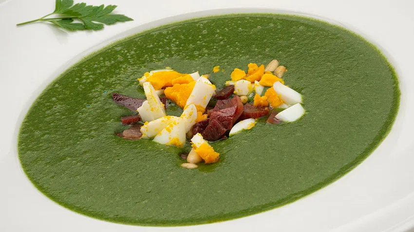 Crema de espinacas con huevo, jamón y piñones: una saludable receta de Karlos Arguiñano