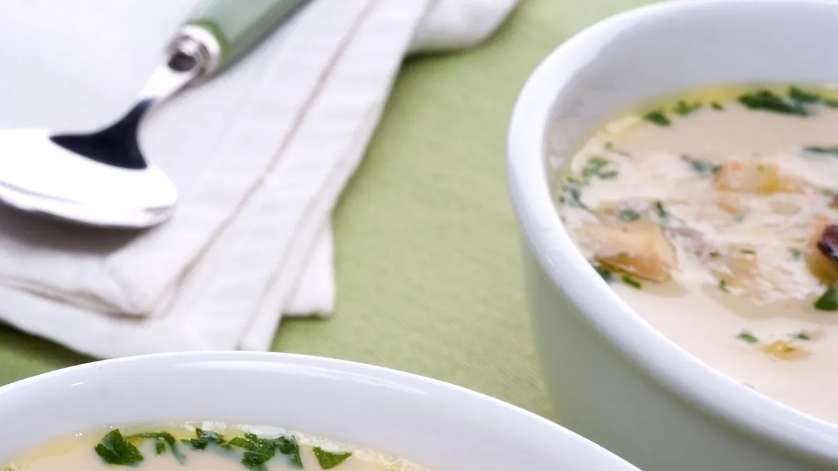 Pon los huevos en un bol y bátelos ligeramente, sin hacer espuma. Añade el caldo poco a poco mientras sigues batiendo suavemente. Si ha salido algo de espuma por encima, retírala.