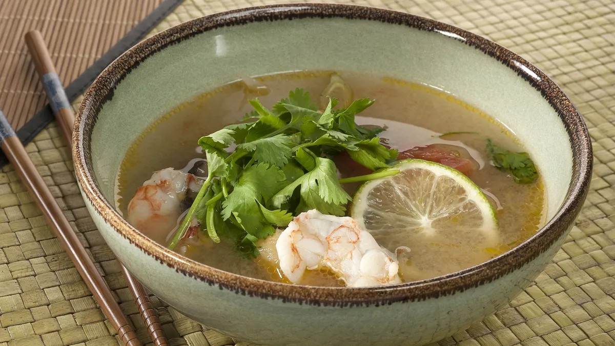 Kevin Patricio prepara un plato de Tom yun goong, una sopa típica de la cocina tailandesa elaborada con gambas y setas y caldo de citronela, hojas de lima, salsa de pescado y leche de coco.