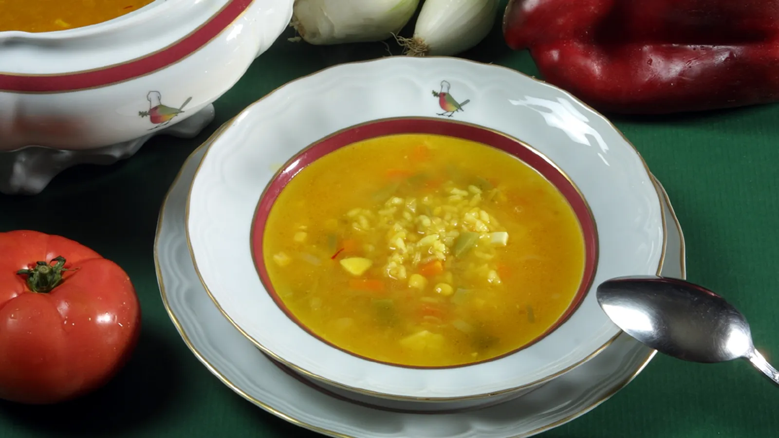 Sopa de arroz y verduras